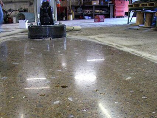混凝土密封固化劑材料滲透到混凝土內(nèi)部后,和混凝土內(nèi)部的游離鈣離子等進行反應(yīng),形成結(jié)構(gòu)穩(wěn)定的分子,使地面強度提升,并通過拋光打磨后,提升地面的光澤度。