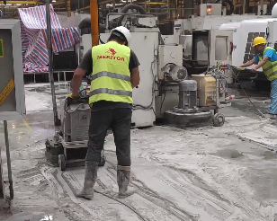 4.待基面滲透反應(yīng)完全后(表面水分沒有完全干燥為佳),使用專業(yè)的清洗地面機(jī)器,去清洗表面以及除去多余的材料。