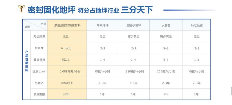 威爾固固化劑十大特色:堅硬、耐磨、防塵、防滑、抗壓、抗?jié)B、光亮、環(huán)保、抗風化、耐腐蝕